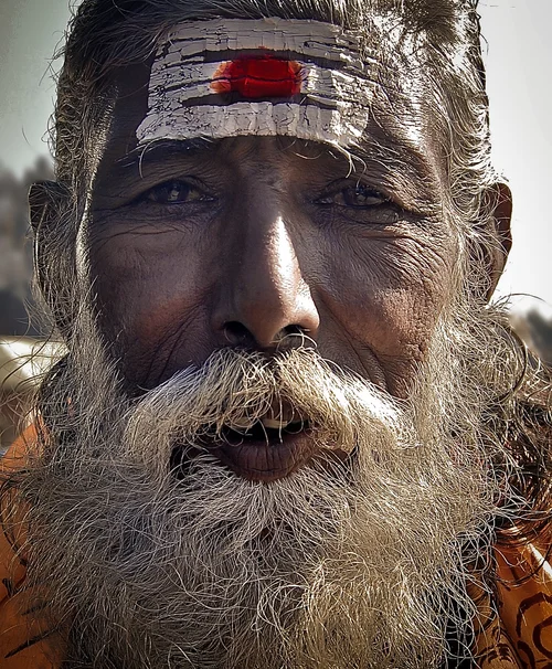 A medicine man in Nepal mesmerizes with his eyes.